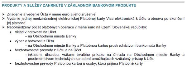 Máš v tom zadarmo účet, kartu, výbery z vlastných bankomatov, IB, prevody/inkasá/trvalé príkazy a vklady a výbery hotovosti na pobočke.