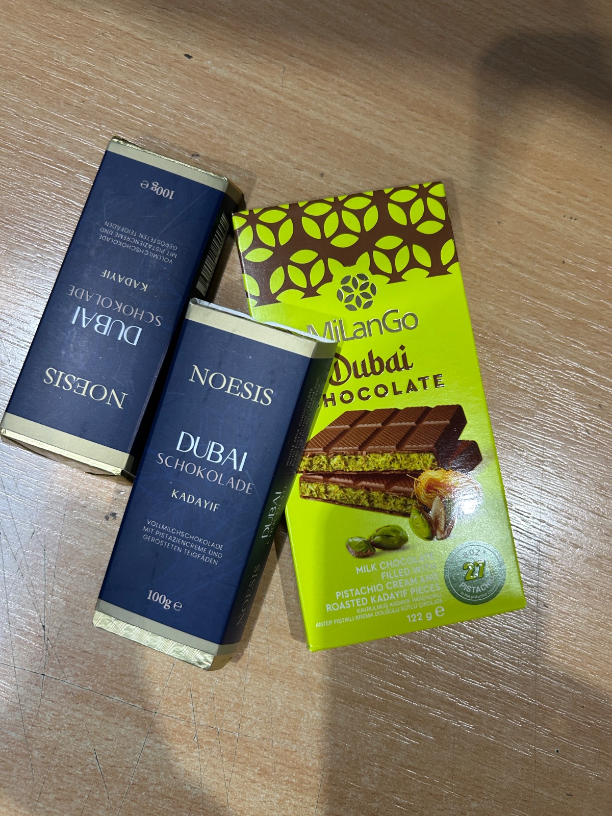 Ja neviem co sa každý ide zblázniť, obyčajná čokoláda ktorá na Slovensku ani dubaiska vlastne nie je 🤣 predražena čokoláda ktorá chuti rovnako ako každá iná. Dnes starký kúpil osem čokolád - každej vnucke jednu a všetkým pravnucatam 🙈 ochutnala som kocku a teda nič extra, oveľa lepšia je lindt čokoláda 🤣