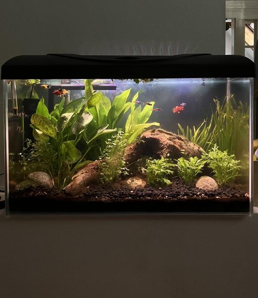 My mame akvarka 4 🙈 mame aj anubias a este nejake rastlinky co sme dostali ale fakt neviem ako sa volaju no rastu do vysky a taktiez mame mach ktory sa sam rozrasta len ho stale striham. Vsetko mame iba zivorodky okrem mreniek a Sewelii. Ideal su gupky, endlerky, mecune alebo black molly. A tiez mame par plavaciek kde sa schovava poter ked sa narodi. Ty mas pekne akvarko podla mna, rastlinky sa rozrastu.