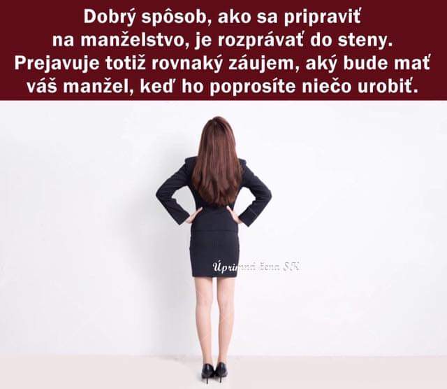 @eliska13 to je jedno, kto to napísal, pobavilo ma to. Ale tiež si myslím, že je iný prístup, keď žena začne každý druhý rozhovor s manželom tým, že nie je schopný ani len tie lampy namontovať, že to tam už trčí dva roky a vyrába doma dusno a je iný prístup, keď tie lampy, rebrík nachystá a poď, pomôžem ti, urobíme to spolu, bude to rýchlo.