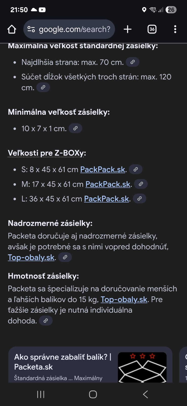 10. aug 2025@anonym_autor Stiahni si aplikáciu Packeta a tam budeš postupne dávať údaje aj rozmer boxu bude a vyberieš si.
