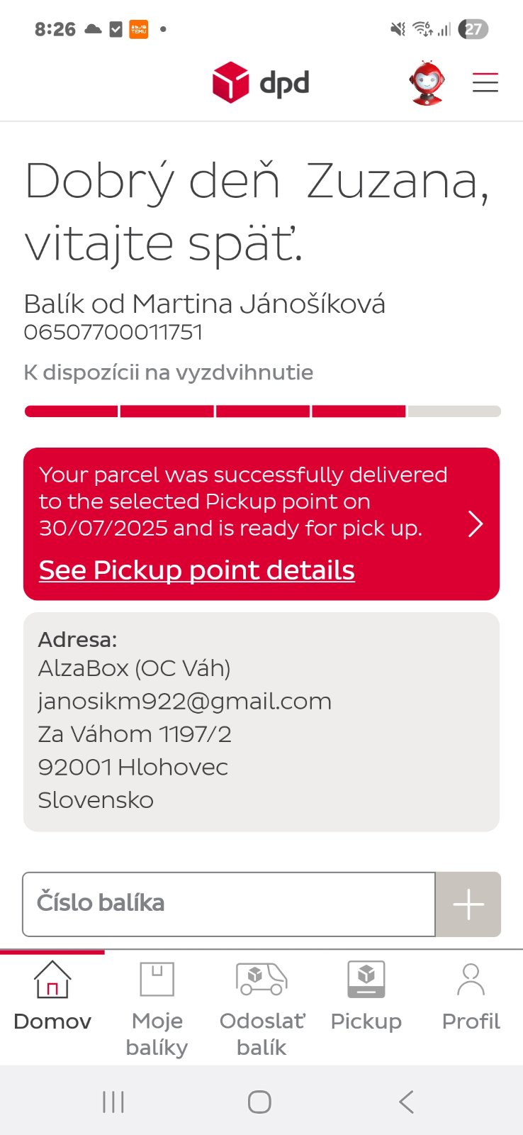 Dobrý deň, vie mi niekto poradiť ako sa vyberá balik z alza boxu....tak ako z packety? Mam stiahnutu aplikaciu my DPD, je to správna aplikácia...dakujem