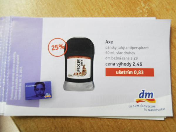 za výmenu kuponov do DM - 25 % zľava na výrobok, 1+1 výrobok, píšte IP