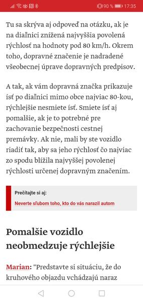 @vroni no ale na dialnici je minimalna rychlost 80 pokual znackou nie je uvedene inak.maximalna je 90 v obci a 130 mimo obce.Tam bola znacka 80 maximalna rychlost.Nas ucili takze ked je znacka 80 tak aj musime ist 80 lebo v podstate je to aj minimalna rychlost.Proste ma vyhodil za pomalu jazdu na dialnici.Nemala som ist 70kou ale 80kou tak mi to aj povedal