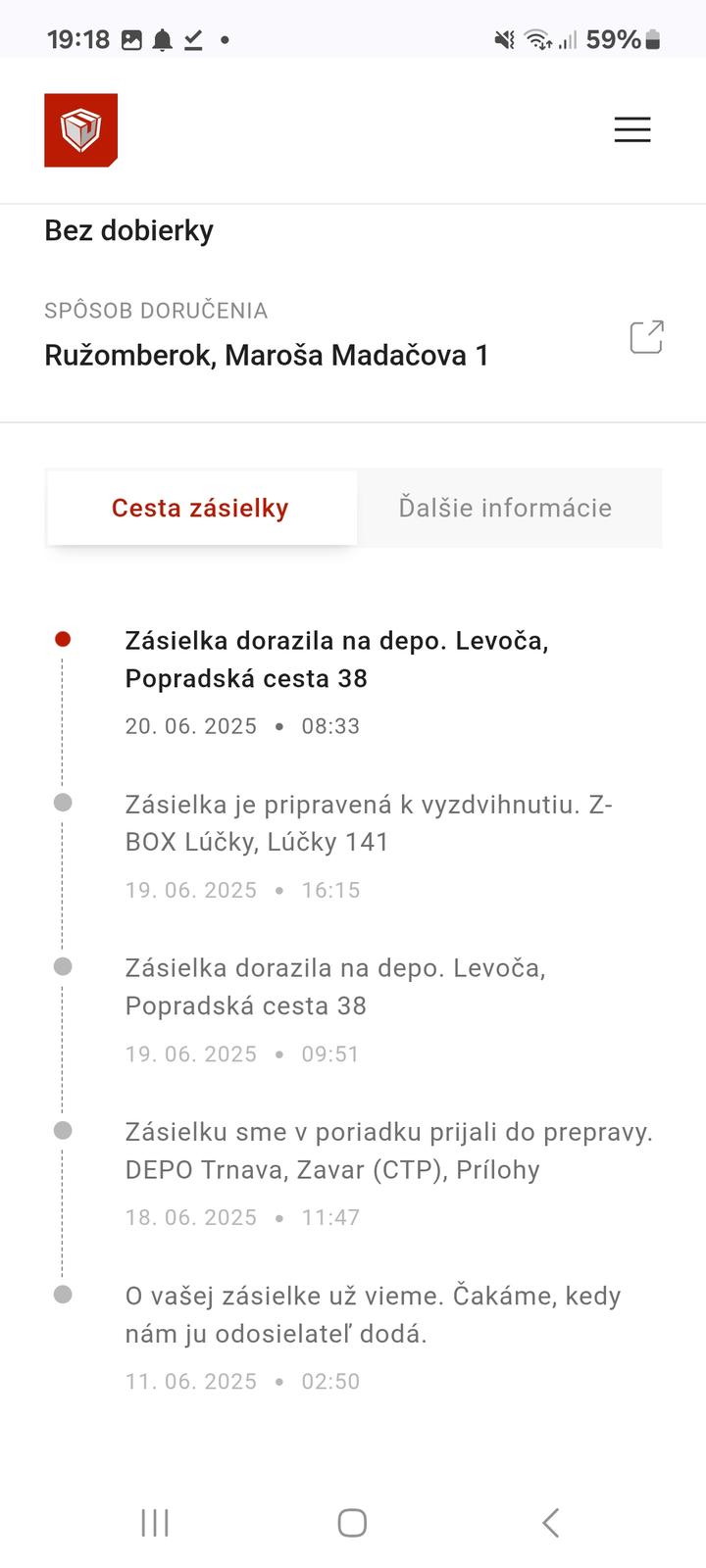 Od 20.6. je to v depe v Levoči? Zvolaj na depo. Poslali ti e-mail, že ti bude doručený balík? tam by mal byť i link, kde si môžeš sledovať zásielku aj im napísať. Do 24 hod. by ti mali poslať e-mail s vyrozumením.