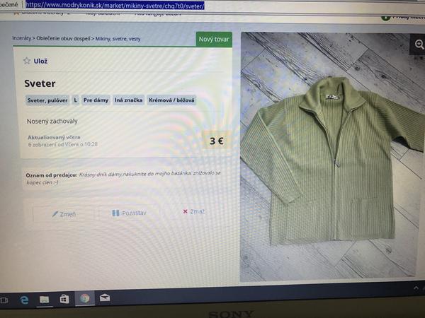 Nechcem sa nikoho dotknút, ale nema niekto nejaku pruchu, ked mi vkuse preraduje inzerat? Ako ok, ked ponuknem opratu a odskusanu vestu, este pochopim ze mi ju zaradi medzi nove veci (nechapem to, nema originalne balenie, visacky, ziadna moznost reklamacie, bola oprana) zrejme nestaci ze si platim plusko..ale ked mi preradi Fusak, ktory vyzera ako fusak, bol pouzivany ako fusak, aj usity ako fusak medzi NANOZNIKY??? Na zaklade coho prosim vas? V zivote som tu s nikym nemala problem, ani konflikt, nepredavam NOVE veci za ucelom obchodu ci zbohatnutia, konstantne mam v bazare par pouzivanych poloziek. Zo zasady dodrziavam pravidla. Ale toto ma neskutocne vytaca. Ked niekto hlada fusak, nepojde ho predsa hladat medzi nanozniky. A co sa tyka novych veci - casto hladam veci ktore su v top stave, pripadne iba odskusane, a nikdy ich nehladam v novom tovare. Tam hladam ked chcem novu, ORIGINAL zabalenu vec s VISACKAMI a hlavne s moznostou REKLAMACIE. Ved na to su zakony. Ako Mozem ponukat nieco ako nove, bez moznosti reklamacie??? Toto je uplny nezmysel..