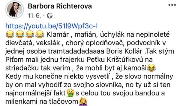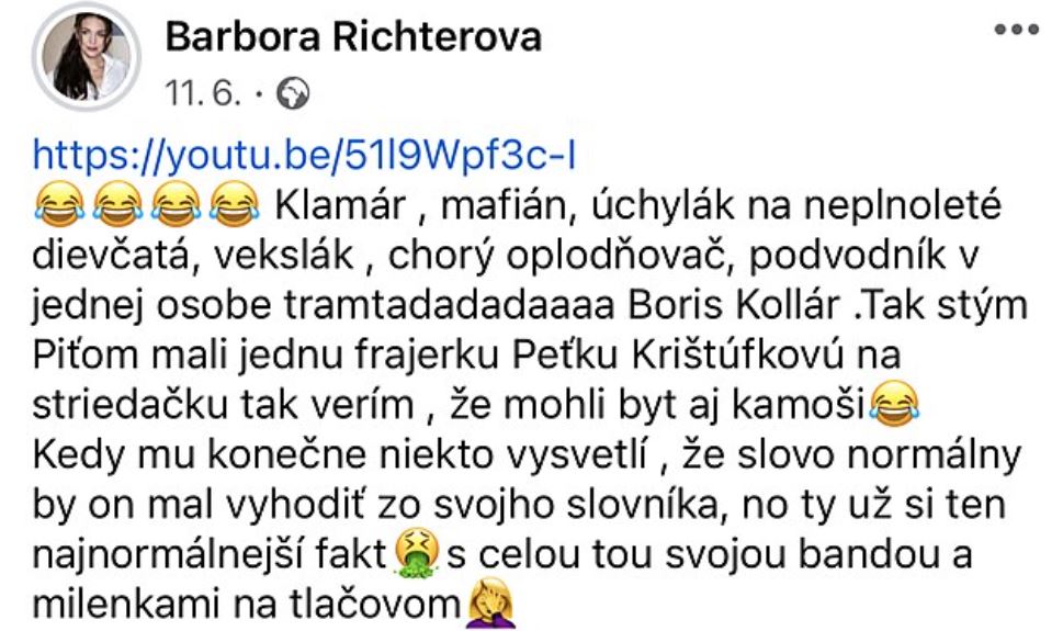 Pochybujem, že by sa sama pustila do takejto hry... Kollár je niekto, má vplyv ,konexie, prachy, moc...a kto je ona???
