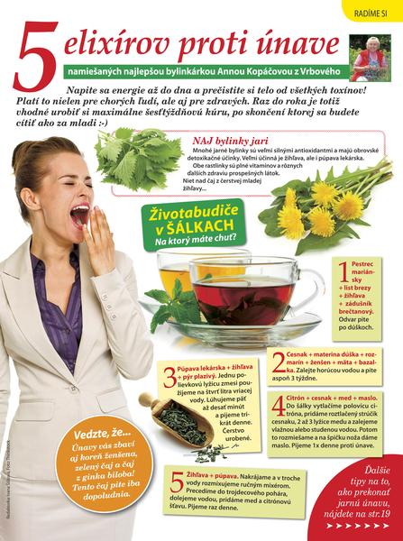 20g šípky, 15 g kvet čiernej bazy, 15g kvet harmančeka, 15g kvet lipy, 10g list maliny, 10g list šalvie, 10g vŕbová kôra, 5g kvet ibišteka.