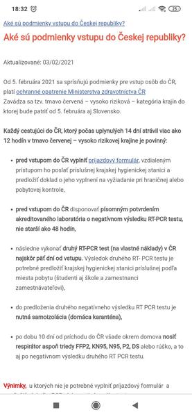 Ďakujem. Takže pri vstupe do ČR mi netreba ani negatívny test, keďže vo výnimkách je cesta do ČR nepresahujúca 12 hodín z dôvodu zdravotnej starostlivosti, len aby som nejaké potvrdenie mala, že idem k zubárovi. A nazad na Slovensko mi bude tiež stačiť potvrdenie, že som bola u lekára? Tiež som našla výnimku nepresahujúcu 12 hodín z dôvodu zdravotnej starostlivosti pri vstupe do SR. Chodí tu niekto takto k lekárovi bez testu do ČR a naspäť?