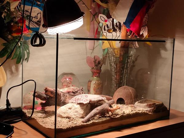 @3katka151 nie, nie je náročná na chov. Jasné, že to nie je mojkáčik ako napríklad psík...a na prechádzku sa pýta tak, že sa dá na zadné nožičky a prednými začne hravosť na sklo terária. Alebo, keď ma zbadá, že stojím pri terapii a pozorujem ju, tak naťahuje hlavičku dohora smerom ku mne a už len čaká a kuká, kedy jej konečne dám ruku, aby si na ňu vyliezla..