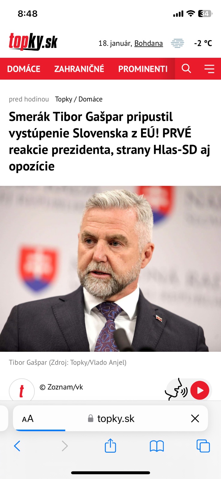 Inak tí, čo sa spoliehate, že ostaneme v EU a NATO, tu máte najnovšie vyjadrenie Gašpara: