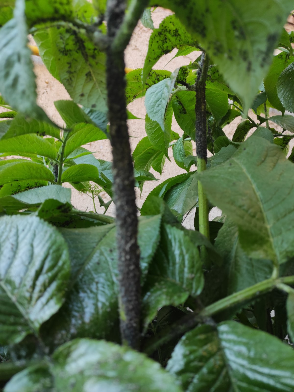 Ak chcete robiť bazový sirup, tak ničím agresívnym by som nestriekala. Ak je to len ozdobný krík, žiaden problém aj s agresívnejším prípravkom. V záhradkárskych potrebách Vám poradia. Nariedite podľa návodu do postrekovacej nádoby (ak nemáte, kúpte aj tú). U nás postrekujeme muškáty nádobkou, v ktorej bol pôvodne prípravok na čistenie skla, ale pri kríku by to asi bolo málo.