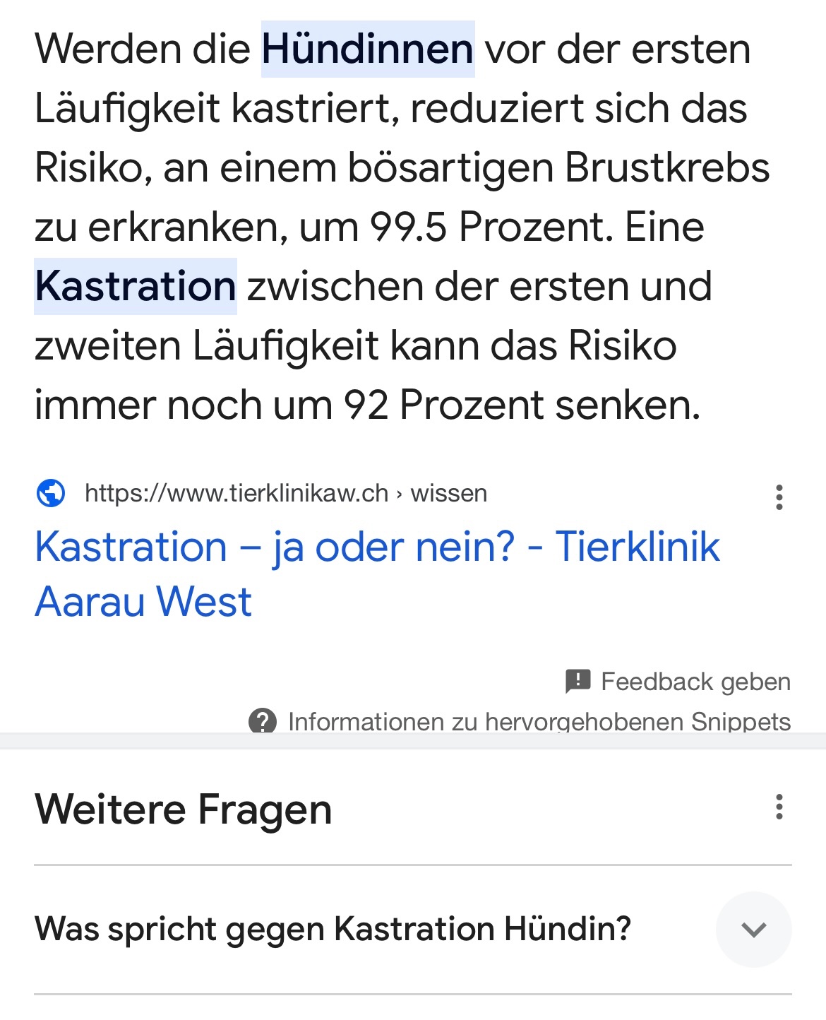 Jaj a dávam ti sem aj hneď prvý príspevok čo na mna vyskočil na Google koli kastracii. Píšu v každom príspevku ze keď das hneď vykastrovat, zníži sa šanca dostať napr. nádor mliečnej žľazy až o 99,5%