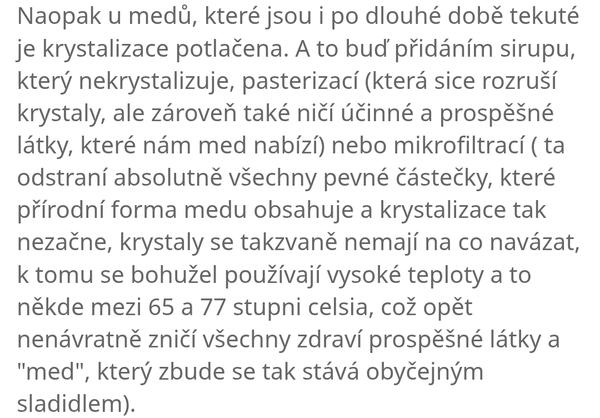 @autorka, ja ten med nekupujem, rodicia na dochodku si ho kupovali. Ty si sa pytala, dostala si odpovede, ktore sa ti zjavne nepacia.To ze ty si si vydedukovala, ze tekuty med znamena, ze bude navzdy tekuty za to ja nemozem. Normalne krystalizuje aj tento co spominaju v tom clanku.