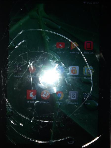 Display zobrazuje a dotyk snima pohyb prstom...Tak ci je obraz vyditelny a prasklina je len na tom vrchom skle?Skuste sem hosit foto zapnuteho tabletu.