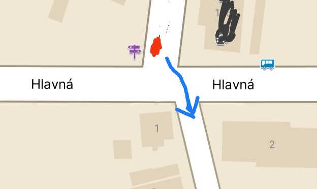 Dám doľava a následne doprava. Nie je to rovna cesta , ideš s vedľajšej na hlavnu a z hlavnej na vedlajsiu