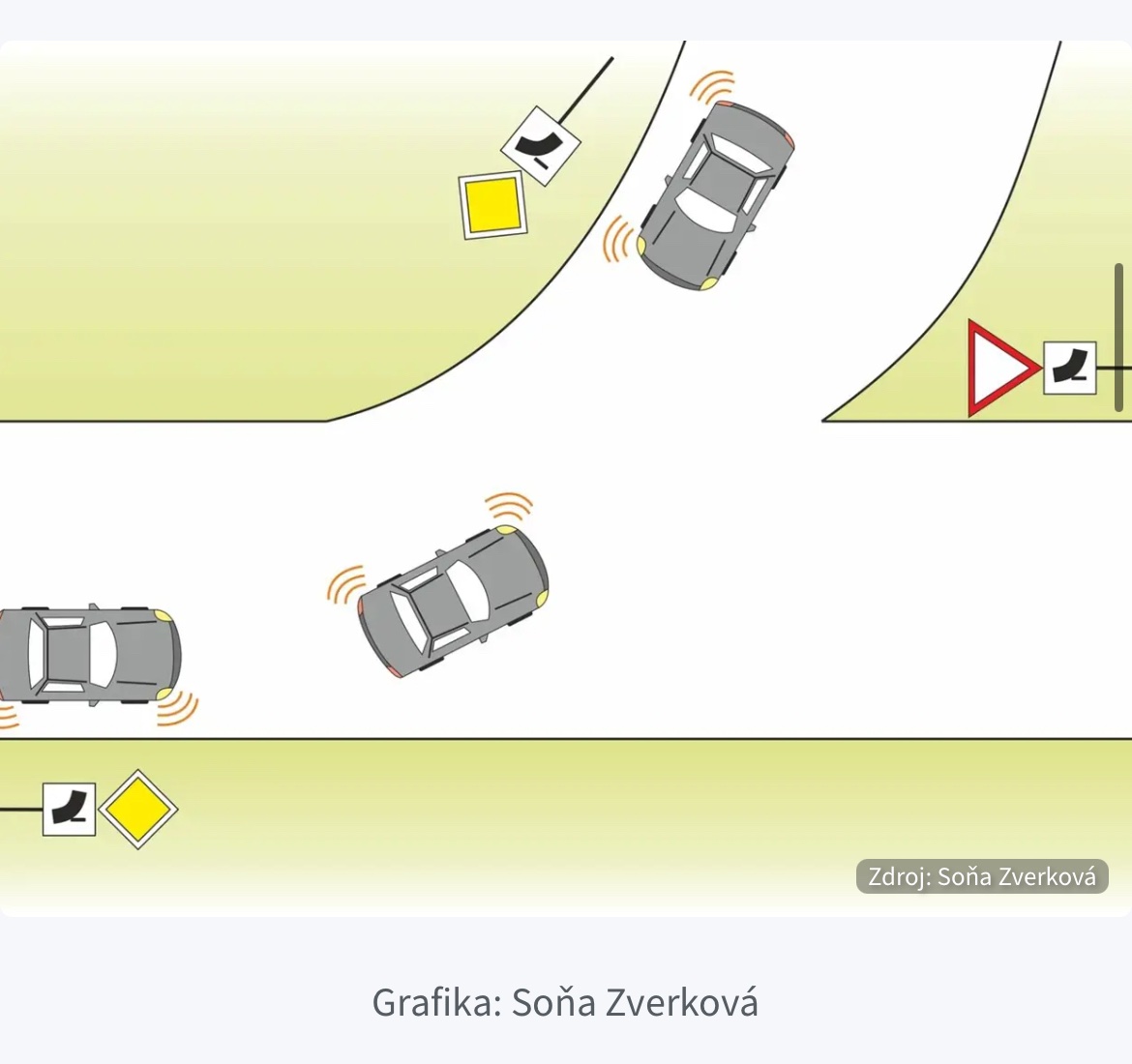 Teraz pozerám značku. Ale jedna vec je značka a druhá realita. Ak je cesta taká,akú si nakreslila, tak určite nemá dávať blinker.