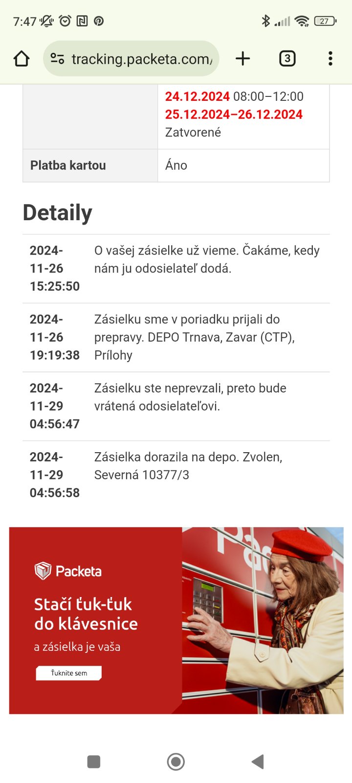 @lilianka28 info packety je len nejaká virtuálna asistentka, ktorá mi povie maximálne to čo som si prečítala.... Zásielka ani nedorazila na odberné miesto.
