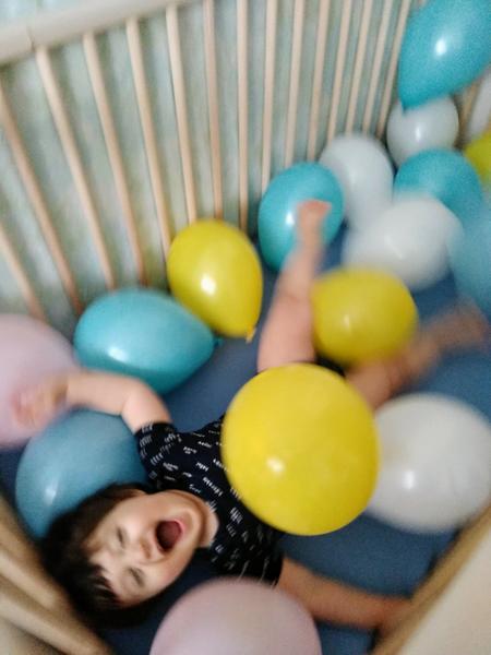 Balony su velmi vdacna hracka. Uz nafukane, alebo aj tak ze mu ho nafukas a das do ruky a on vypusti. To sme sa hrali cele mesiace po oslavach narodenin.