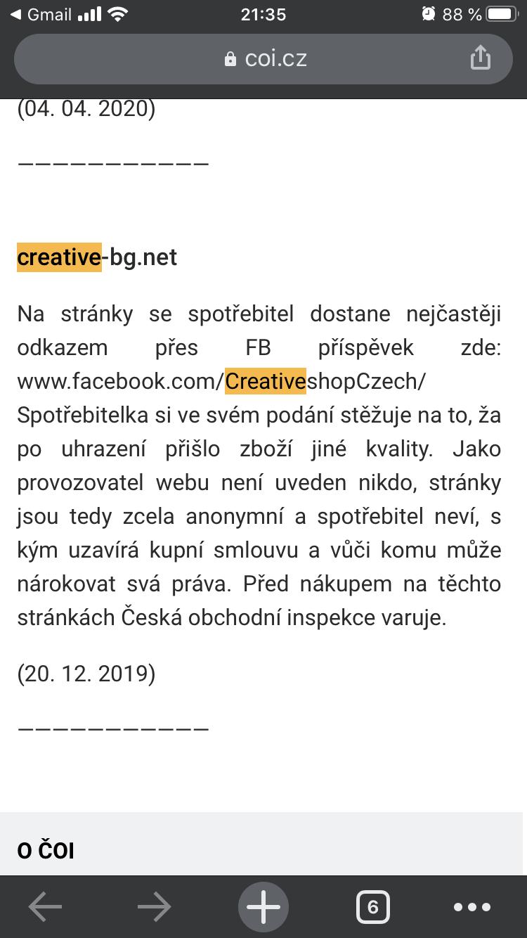 Dnes približne 10 mailov na creative.sk, odkiaľ mi odpovedajú iba: balík ešte neprišiel, koronavírus a pod. Ak to tak necháme, prídeme o peniaze. Uvedomme si, že nás je veľa zákazníkov, ktorí nie sme spokojní, nevracajú nám peniaze. Oni získavajú peniaze za zlý a poškodený tovar, my im ho ešte pošleme späť, takže ho môžu opäť použiť a €-rá sa im sypú. Navrhujem poškodeným, aby sme sa spojili a nahlásili túto stránku.