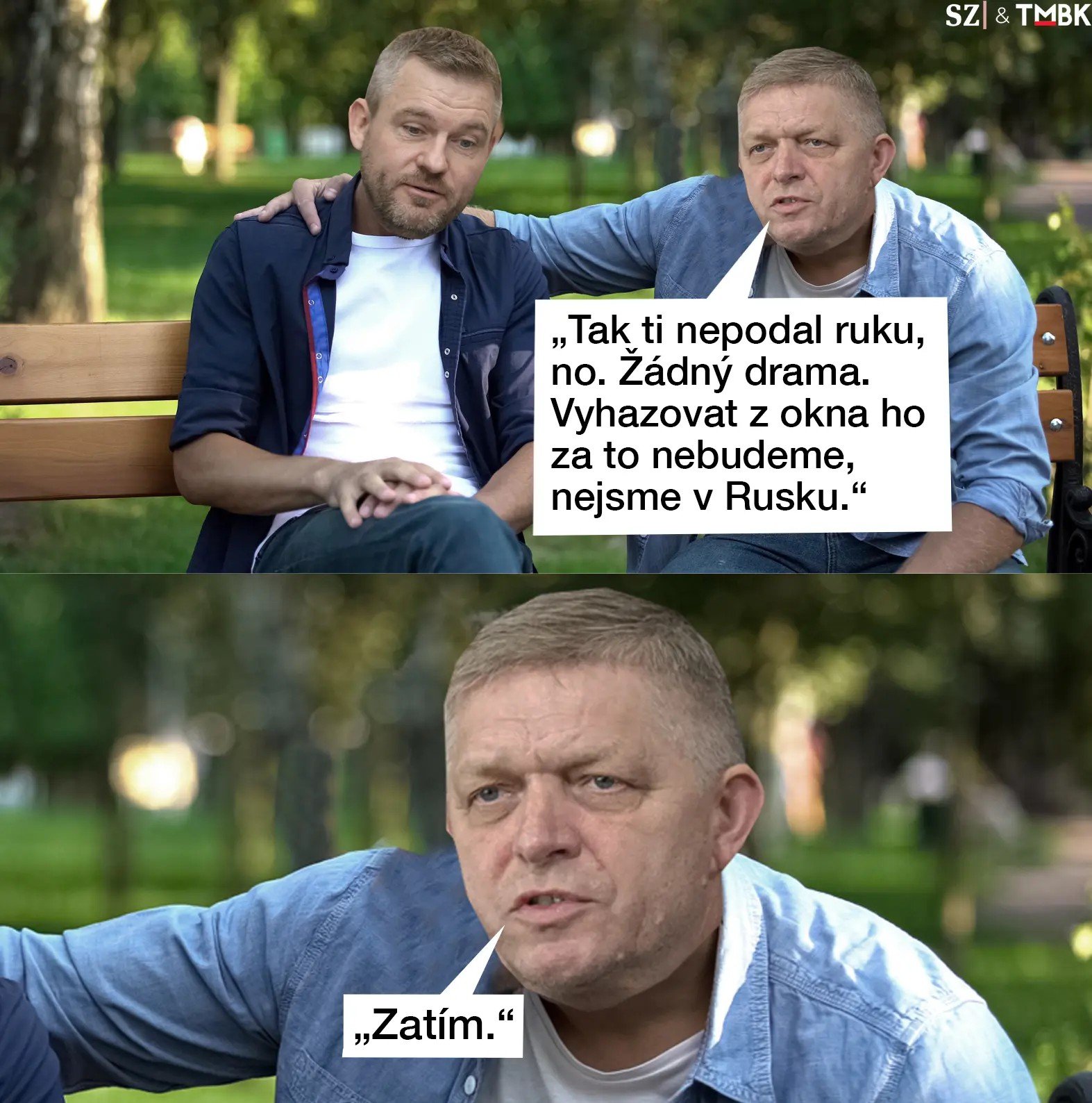 Konečne si fico našiel novú tému. Čo tam po kolabujúcej ekonomike, drahých potravinách, nedostatku plynu a naštrbených medzinárodných vzťahoch. Študent nepodal pelimu ruku, existencia Slovenska je ohrozená, utekajteeeee!!!!