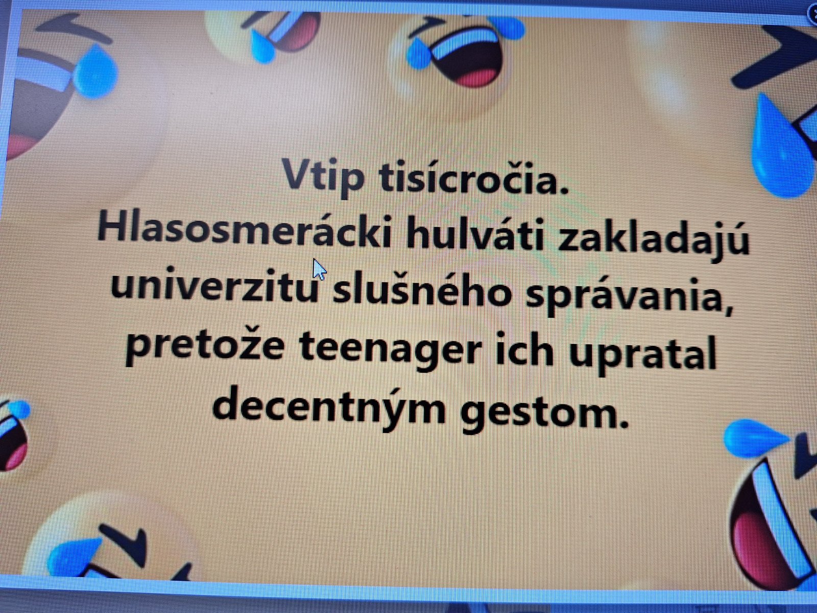 @sevrin a takto na tom onanuju slnieckari 😁. Mozu si podat ruky. Jedni ako druhi. Malokto sa na to dokaze pozriet bez politickeho presvedcenia s nadhladom. A ked das vsetky city bokom, potom je to odvazne, ale nevychovane. Nemal tam chlapec potom chodit, Studenkova to urobila dobre. Vyjadrila svoj nesuhlas so sucasnou politickou situaciou a zaroven sa neponizila.