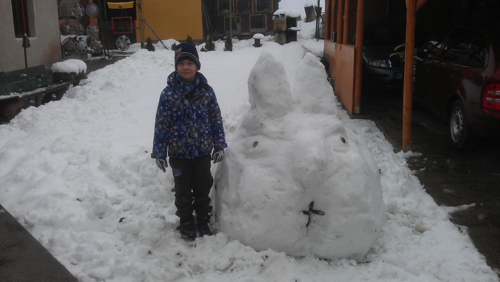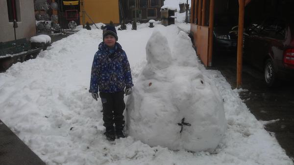Dobré ranko. No je to gól,veľkonočný zajac zo snehu.