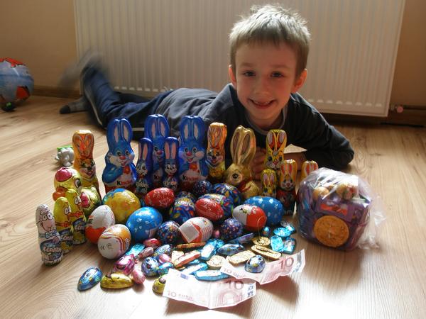 Viki tiež toho podostával....veľa je aj z dobrej čokiny, ale aj z tej hnusnej kakaovej. To bude buď na koláč, alebo zanesieme svokrovi, ten poje všetko 😀 . A zarobil si aj dosť euráčikov, čo som bola prekvapená, lebo všetci sa sťažujú, že nemajú a dávali akoby zadara...