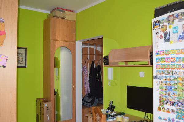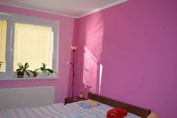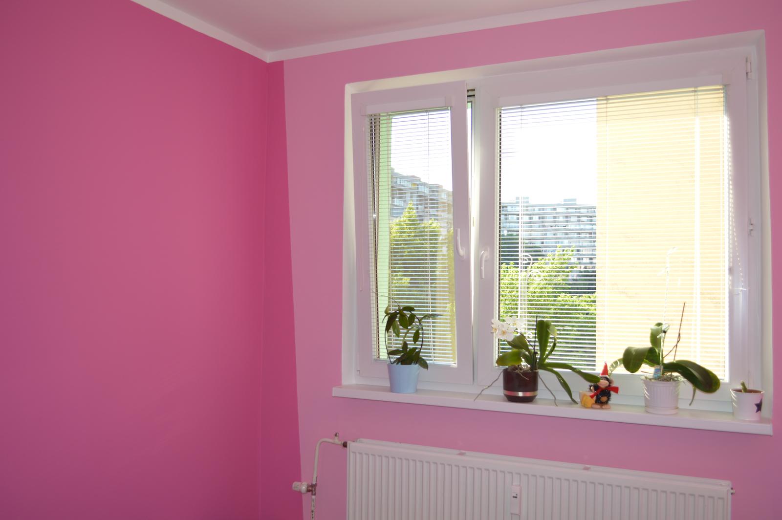 @denisenko kúpelka, wecko a malá chodbička je bielou, kuchyňa tiež, len ešte jednu stenu, kde je stôl chceme natrieť na krémovo. Chodba je zelená a spálňa je ružová, ale dvojfarebná. Bledá s tmavšou.