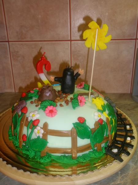 tak kukajce že toooorta 😵 upiekla moja maminka len krtečka som vymodelovala z marcipánu ja 😀 a trošken fotken z oslavy 😉