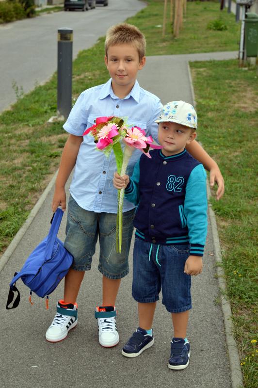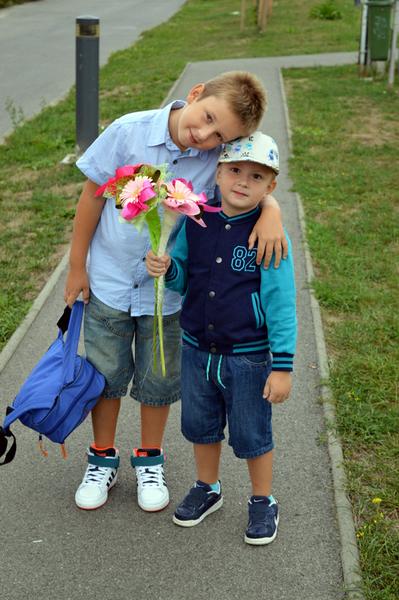 Prvy den ideme s nim vsetci. A potom ho uz bude rano vozit Peto cestou do prace a ja budem chodit s Luckou busom po neho. Kym sa nebude citit na to,ze to zvladne sam...