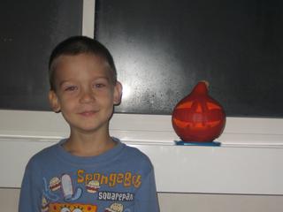 @utka šikovní ste 🙂 ...pekná tekvička aj Vikinko..fešáčik 😵 ......my ešte len vyrezávať budeme...neviem kedy sa do toho pustíme..ale také tie malé okrasné a svetielkujúce už máme vycapené vonku 🙂