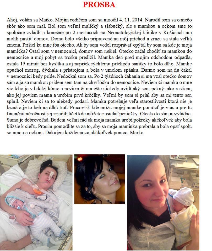 Život prináša ťažké chvíle a táto mladá mamička to má naozaj zlé. V nemocnici sa jej nemôže personál venovať, ako by potrebovala, preto ju chcú dať do Adela centra v Piešťanoch. Tam sa to ale platí. Manžel to sám nevykryje.... tak ak máte € navyše, pošlite ho na transparentný účet: http://www.facebook.com/active.life.sk/photos/g... číslo účtu: 5064143812/0900 http://transparentneucty.sk/