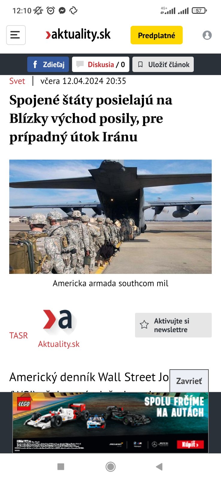 Izrael nie je v NATO. Takže nie... z tohto mraku nezaprší. To skôr z tých deb1lných Rusov. A môžme sa zobrať a ísť zomrieť niekde s puškou z roku 1945 zo skladu ktory odvtedy neotvorili. A všetky slovenské hrdé národniarky s prázdnou hlavičkou budú hrdé a šťastné, že 60% chlapcov, mužov, synov a manželov zomrie v priebehu okamžiku bez reálneho zapojenia sa do streľby. ... Ale hlavne že išli na vojnu a budu z nich muži 😉