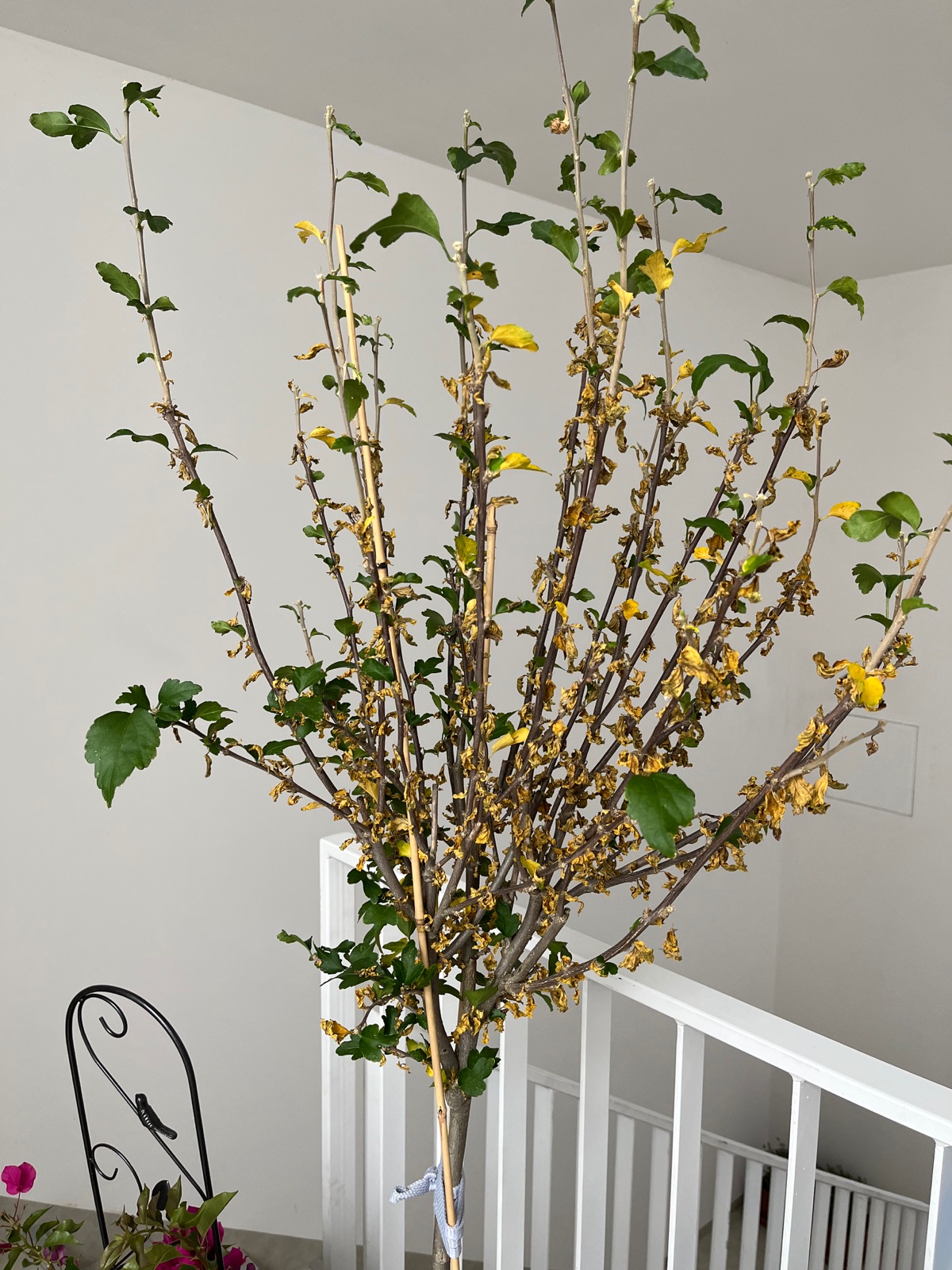Žienky záhradníčky, prvý raz mám ibištek. Celú jar/leto krásne prospieval, ešte začiatkom septembra parádne kvitol. Ako začalo byť do rána okolo 5 stupňov, presťahovali sme ho do chodby, kde je cca 18-20 stupňov a šero. Je toto normálny jesenný stav alebo to má chudák za sebou? Dostal nejaký šok po zmene stanoviska? Listy ožltli v priebehu pár dní po presťahovaní.