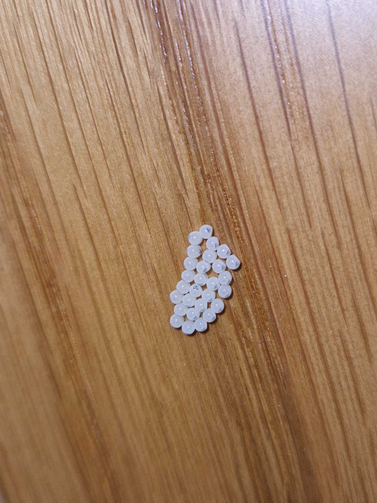 Podla umelej inteligencie: Na základe vizuálnych charakteristík – malé, biele, guľovité vajíčka usporiadané v zhluku – s najväčšou pravdepodobnosťou ide o vajíčka mole.
