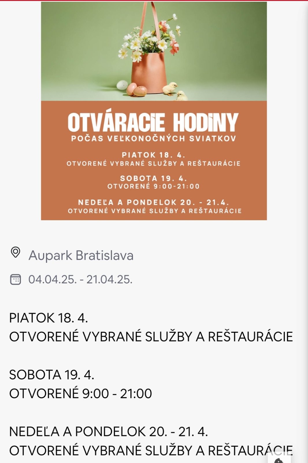 Kludne sa posunte o par km dalej, v Rakusku si nakupite... A teda tajomstvo - aupark ma vlastnu stranku s informaciami...