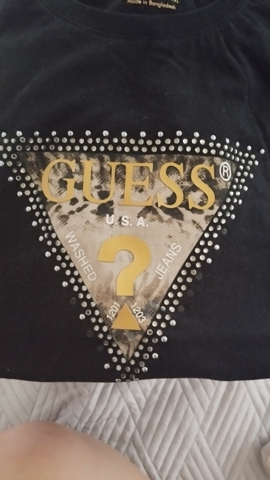 Kúpila som si tričko značky Guess, zdobené kamienkami.