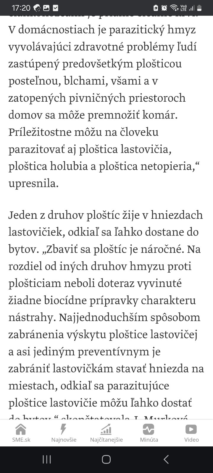 @paulinka2804 načo zhadzovať hniezda, prepána?! Viete, že je to aj trestné, mimochodom?🤦🏼♀️ Treba poriadne zvnútra, aj zvonka vystriekať hniezda biolitom, keď odletia. Ale nie iba raz, treba každý deň, aby sa vykynožilo všetko. Sestra má pri oboch oknách lastovičky a v živote jej žiaden parazitický hmyz do bytu nevliezol, nakoľko to takto robí, keď odletia. Naopak, na rozdiel od mňa nemá problémy ani s muchami, ani s komármi v lete. Úprimne, mám chuť si sem nejaké lastovičky nasťahovať, lebo v lete sme celí doštípaní od komárov a to aj napriek sieťkam na oknách. 🤷🏼♀️🙂↕️