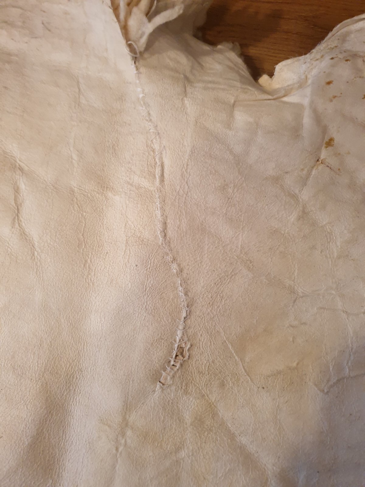Podľa mňa to moc čerstvé nevyzerá, už to je asi dlhšie, tiež máme jedno podobne takto zošité lebo sa trhať začalo :/