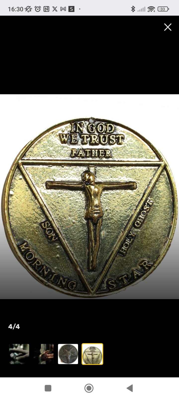Ženy, aj keď nie som nejako extra praktizujúci kresťan pred niektorými vecami mám rešpekt. 🫣 Je v poriadku nosiť takúto mincu so sebou? Videla som seriál na Netflixe a tam mal jeden v rukách takúto mincu. Z druhej strany je zobrazená tuším koza v trojuholníku a nápis "in God we"re damned". Prosím Vás 🙏 bez hádania sa, aj som googlila ale nikde nie je o Tom nič napísané, a ako som spomínala no mám pred takými vecami rešpekt hlavne z tej druhej strany mince ;) nechcem sa však s takými vecami zahrávať 🙂