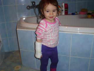 @jenie123 ani velmi neplackala, trosku doma, len sa stazovala ze boli rucicka, tak ja, ze zbehneme na pohotovost na Kramare nech ju pre istotu pozru. Nic nenasvedcovalo, ze to ma zlomene, v aute sa smiala, v cakarni behala po chodbach, vyliezala na stolicky. Dr. ze spravime rtg, pri rtg trosku poplakala ked zbadala tie stroje nad sebou, ale to som ju drzala ja, takze sa dalo. No ked mi dr. oznamila, ze dvojita zlomenina, krvi by sa mi nikto nedorezal, normalne sa mi podlomili kolena od strachu. A sadrovanie v pohode, super bola dr. aj sestricka jej ukazovali rozne hracky, mali pomalovane steny tak si ani nevsimla, ze jej nieco robia. Teraz uz spinka, dufam, ze ju to nebude velmi boliet dala som jej pre istotu aj Nurofen.