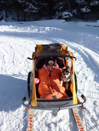 tu je nas dnesny vylet na bezkach. este rano o 8am bolo -12 a ta sme sa nevedeli rozhodnut, ci pojdeme, ale napokon sme vyrazili o 11.15. a bolo super! 😀 havo ani chodit nechcel, ked prisla na to, ako fajne sa vozi. ze vycikat a potom kvikot, ze ona ide spat dnu do vozika 😀 a ze sibirak 😉