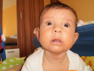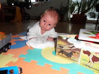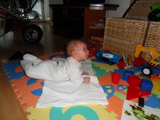 Dokonca sa už 2x pretočil z bruška na chrbátik - ale to bola asi len náhoda, lebo od vtedy to už nezopakoval.