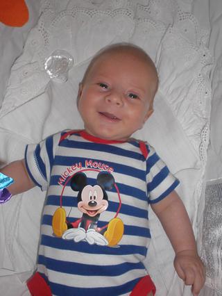 @mojalili krásne dvíha Danko hlavičku...a ten nosík iste zaryl do deky, preto je červený...čítala som, že ste boli v nemocnici..chúďatko maličké už musel podstupovať operáciu..nebolí ho rana? znáša to dobre? a čo vám pomohlo na prdíky a kakanie? vyzerá to, že u nás to začína byť horšie teraz, zatiaľ si pomáhame rektálnou trubičkou a dávam mu kvapky Infacol na koliku...