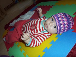 kuk na tú čo už má, nehodí sa k oblečeniu, ale to bola len skúška-inak v čiapke vypadá ako také miminko, tie vlasy robia strašne veľa