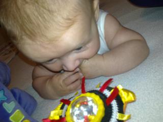 @mici111 - no my motoricky stale nic moc, ani sa nepretoci, a na brusku tiez nie je moc rad, aj ked hlavicku uz drzi pekne... Hracky pekne chyta, aj si vezme tu, ktoru chce, na deke si vsetko pritiahne a dava do pusy... ale ze by z bruska, to este nie... pravdu ani ho na to brusko moc nedavam 🤐