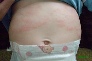 @takyna hanka mala okolo oci a na lickach pri usku - ale z cerstveho ovocia ... a scasti jej to ostalo dodnes - raguje na kecup, rastlinne maslo, panadol sirup - ale nie, ked zje, len ked to pride do kontaktu s pokozkou - ked vyjeda striedku na chlebiku a maslo sa jej poobtira po lickach, kym doje, je ako repa cervena na tych miestach - ale ako prislo, tak odide