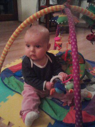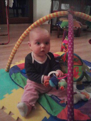 babyyyy... moja prave sedela asi 6 minut.. hned som ju muslea pocvakat. 😀 kotuha, ale vie ze sa ma pridrziavat hraciek.. 😀 ked sa pustila tak stratila balanc.. 🙂
