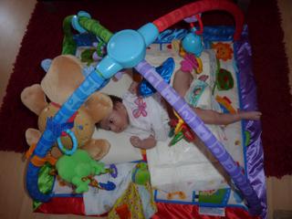 akurát sa pod ňou hrá, vydrží tak sama aj hodinu a rehlí sa, ja som jej tam povešala všetky hračky čo má, tak to vypadá úžasne, ale ona je celá šťastná